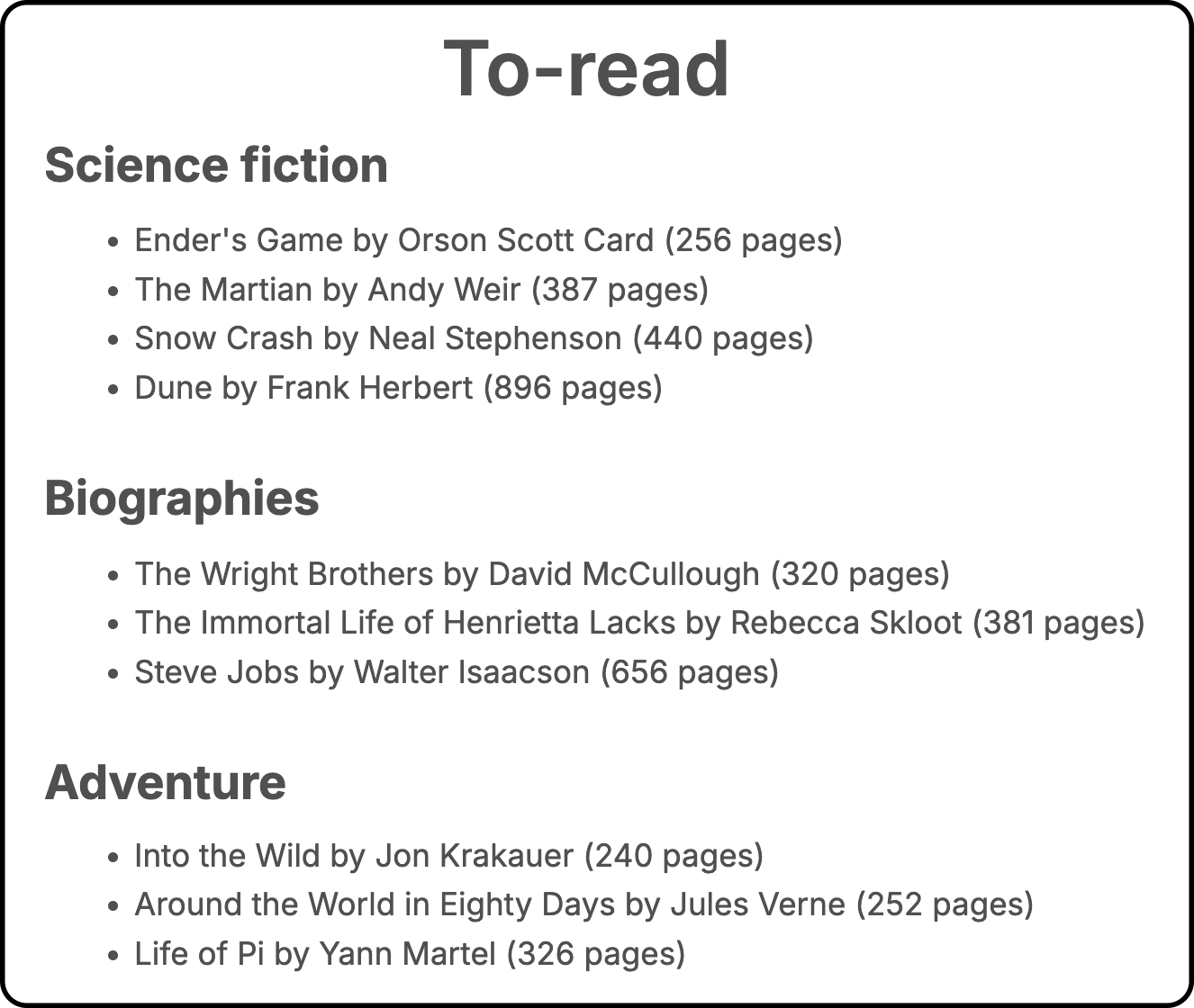 If you have a list of books you want to read, you’ll always have a selection to choose from once you finish a book.